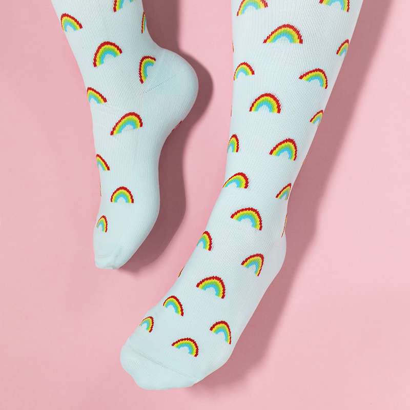 This is a great product with a quick turnaround, and I love the patterns! I have been dealing with numerous issues in my left leg for years, due to clot damage and varicose veins, which means I need to wear a stocking almost every day. It’s wonderful to have something soft, easy to put on, and colourful to wear for a change! The only negative I can find is they’re thicker (material, not grade) than the medical stockings I used to buy, so, currently being in the summer months, my lower leg is extra toasty. Will appreciate it much more in the winter!